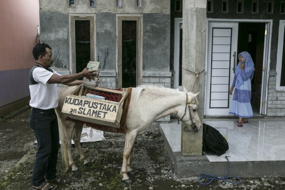In Indonesia, one man and his horse have created a walking, braying mobile library to bring books to the remote villages on Java island.
